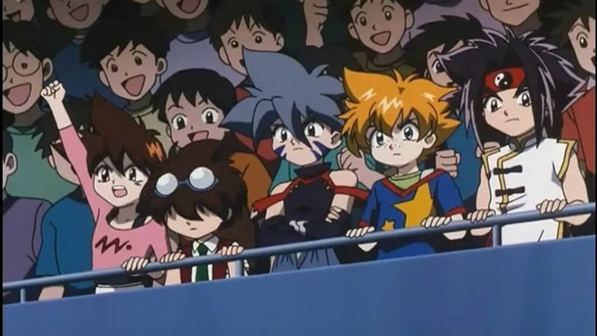 The Bladebreakers are on a well deserved vacation. But, a hyperactive kid named Daichi continues to pursue Tyson for a rematch after his defeat in the Beyblade World Championships. The Bladebreakers' vacation eventually takes a turn for the worst once they encounter mysterious Beybladers who claim to be the Dark Spirits sealed inside a strange temple. With Daichi under their control, the Shadow Bladers seek to destroy the world with their Dark BitBeasts. Together, Tyson, Max, Ray, and Kai must save not only Daichi... but the world as well... (Source: ANN)