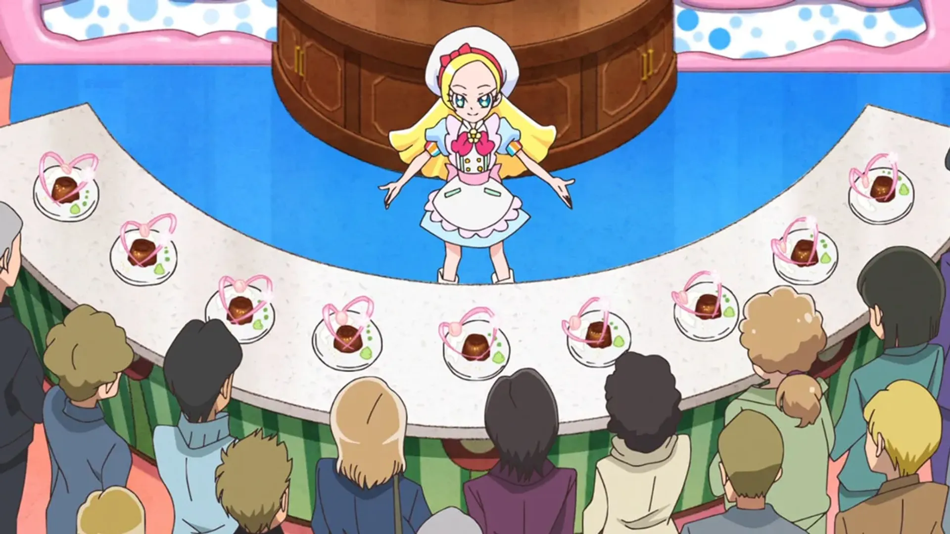 I'm Usami Ichika! Myself and the others all decided to take part in a famous sweets contest that's to be held in France♪ But Ciel doesn't seem like herself...so making sweets and transforming into a Cure don't go so well for her! At the contest venue, we meet a pâtissier called Jean-Pierre. Hang on! This is the same man who taught Ciel how to cook in Paris! Ah! I just had a bright idea☆Ciel should create a memory filled-sweet called "Mille-feuille" together with Jean for the contest! With that all decided, let's・la・cooking...well, that's what I thought until a mysterious monster attacks the pâtissier! We also find out that Paris is hiding the realest sweet ever!? What is going on~~~!? (Source: Precure Wiki)
