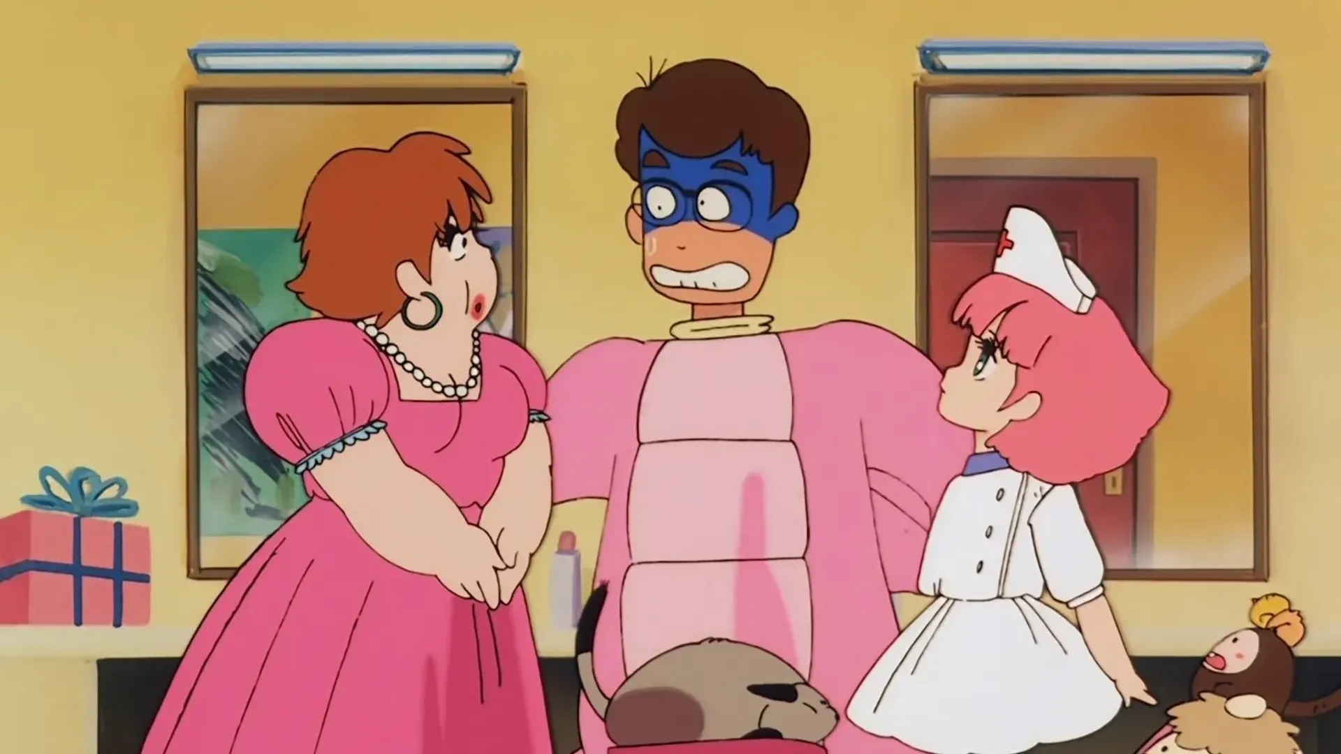 Minky Momo travels to an island where she finds a land of children and gets tangled up in an absurd, no-holds-barred standoff against the world's nations. Has "Dr. Strangelove" references. (Source: AniDB)