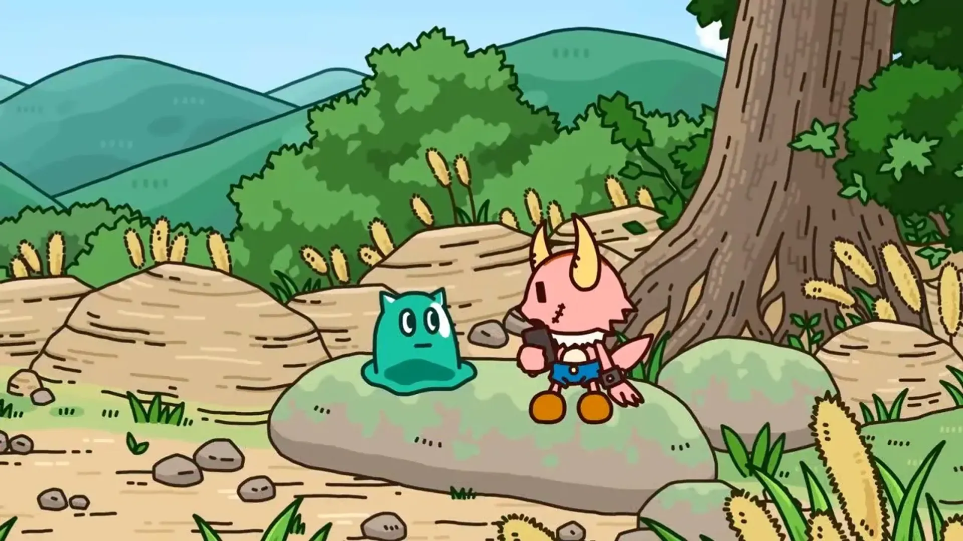 A collaboration promotion between the Ponkotsu Quest anime and the Monsterz live action horror film (which is a remake of a South Korean film titled Haunters) airing in theaters.