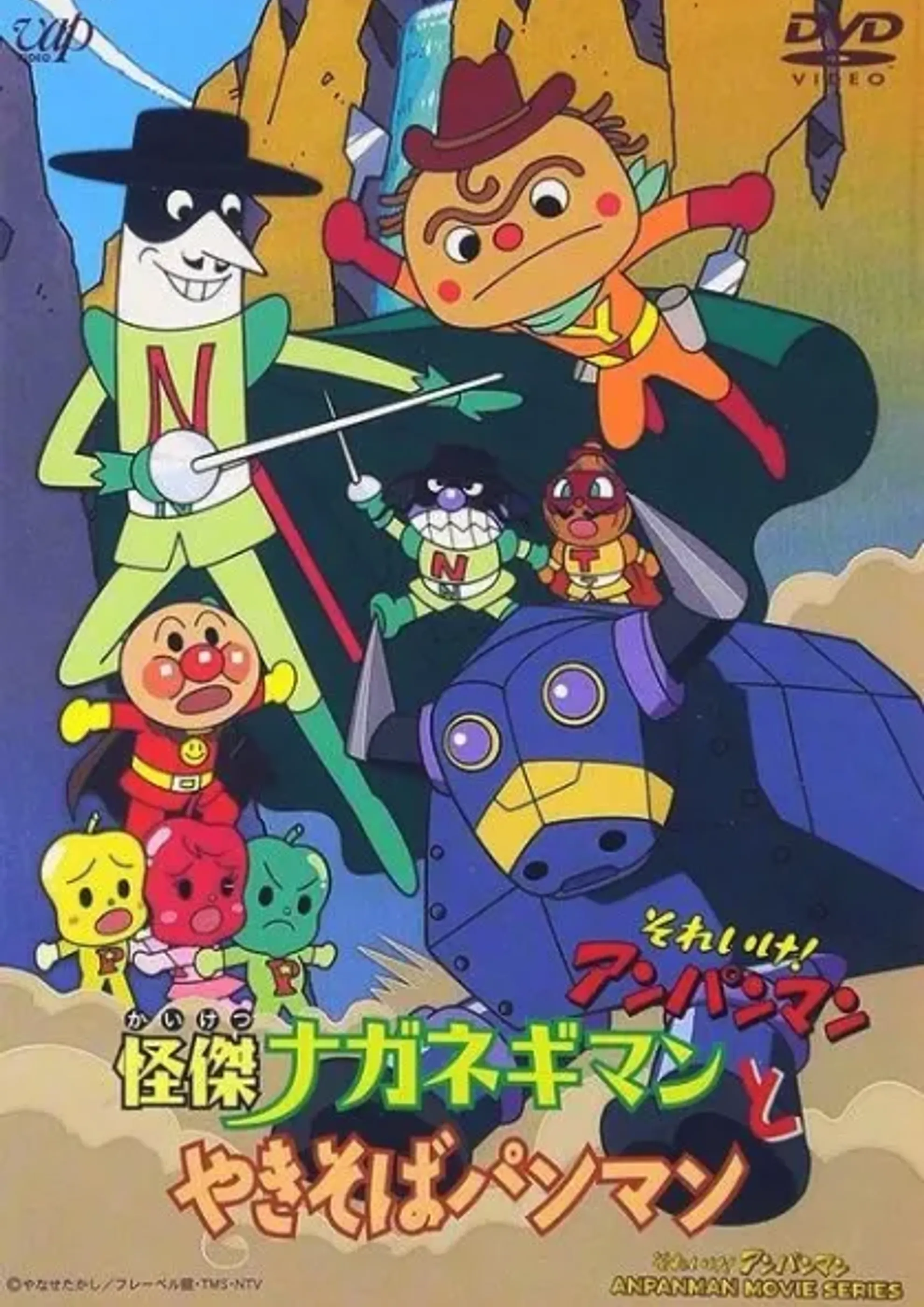 Yakisobaman and Uncle Negi try to escort the young Pepper Trio and their important cargo to Vegetable Village in time for the carnival this evening but Baikinman and his gang are trying to steal the cargo. Luckily, Naganegiman keeps showing up to help fight them off, but how? Who could this mysterious masked swordsman be? (Source: Shiteater Subs)