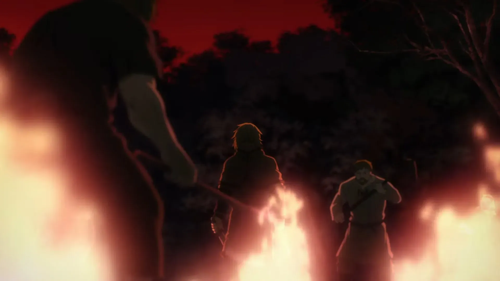 Торфінн, показаний спочатку як член рейдерів Аскеладда, вбиває кількох людей під час рейду. Коли він заходить до сусіднього будинку, то знаходить сім'ю, що стискається всередині. Джерело MyAnimeList