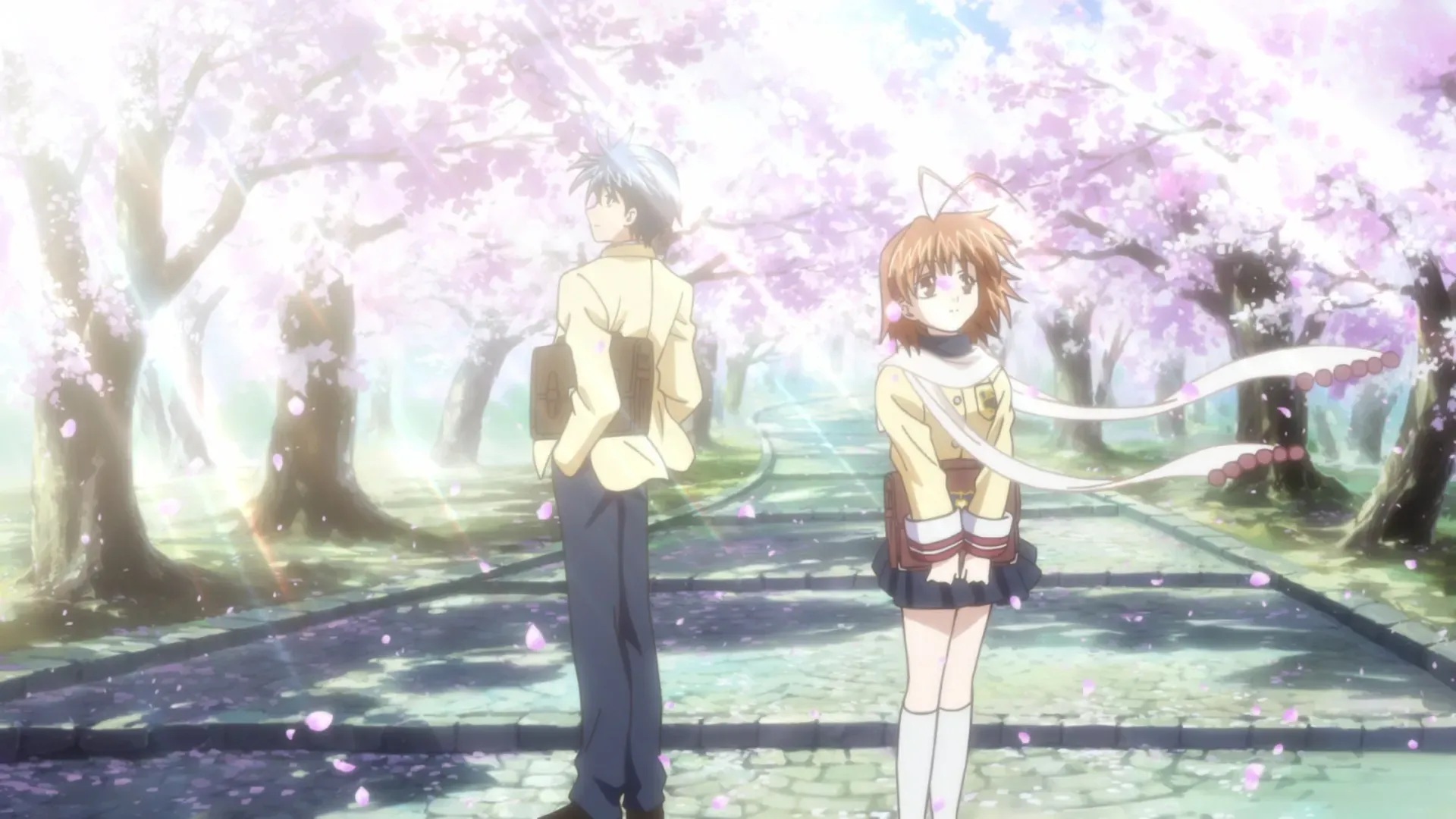 Окадзакі Томоя - цинічний злочинець, позбавлений амбіцій, який апатично вчиться в старшій школі. У дитинстві трагедія змусила його батька шукати розради в алкоголізмі та нехтувати сином. Проте змістовна людська взаємодія може бути благословенням, про що Томоя дізнається, коли зустрічає загадкову Фурукаву Наґісу. Дивакувата дівчина пропонує Томої жест дружби, але він відкидає прохання, вважаючи це дріб'язковим інцидентом. Однак незабаром він усвідомлює, що все частіше зустрічає Наґісу в школі, Томоя відкидає свою неприязнь і починає дружити з дівчинкою. Дізнавшись, що Наґіса мріє відродити драматичний гурток, Томоя вирішує позбутися своєї відстороненості від буденних радощів життя і присвятити себе допомозі своїй новій подрузі у здійсненні її амбіцій. Але те, що починається як проста дружба, може перерости у щось набагато глибше, інтимніше і змінити життя. Поступово Томоя і Наґіса стикаються з різними труднощами та негараздами, але разом з тим поступово примиряються з життєвими викликами. Джерело MyAnimeList
