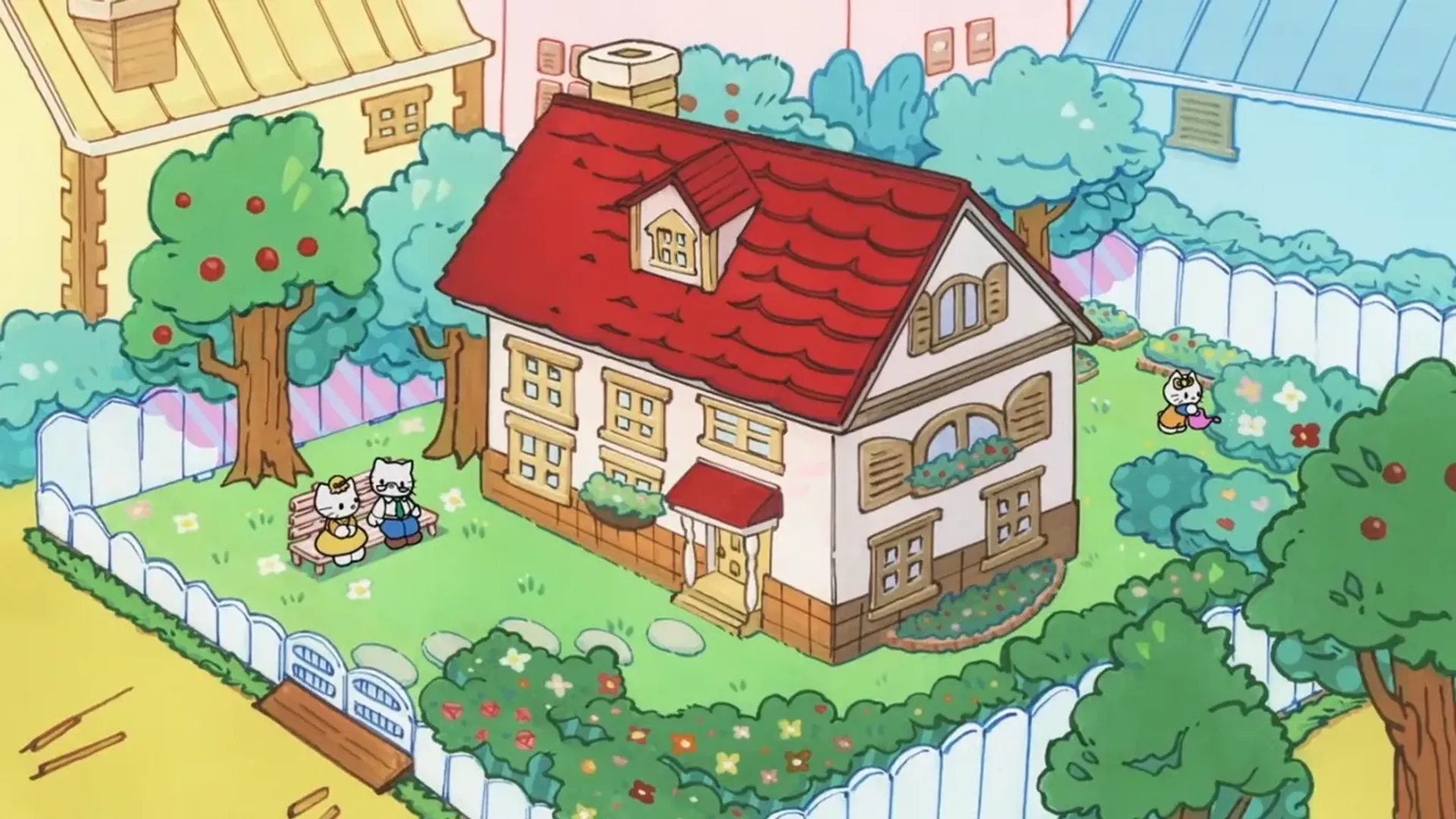 While preparing for a tea party, Hello Kitty receives a distress signal from Haro. She travels to the Universal Century timeline to help Amuro Ray and the Gundam end the One Year War. Cross-promotion to commemorate the 40th anniversary of Gundam and the 45th anniversary of Hello Kitty. (Source: ANN)