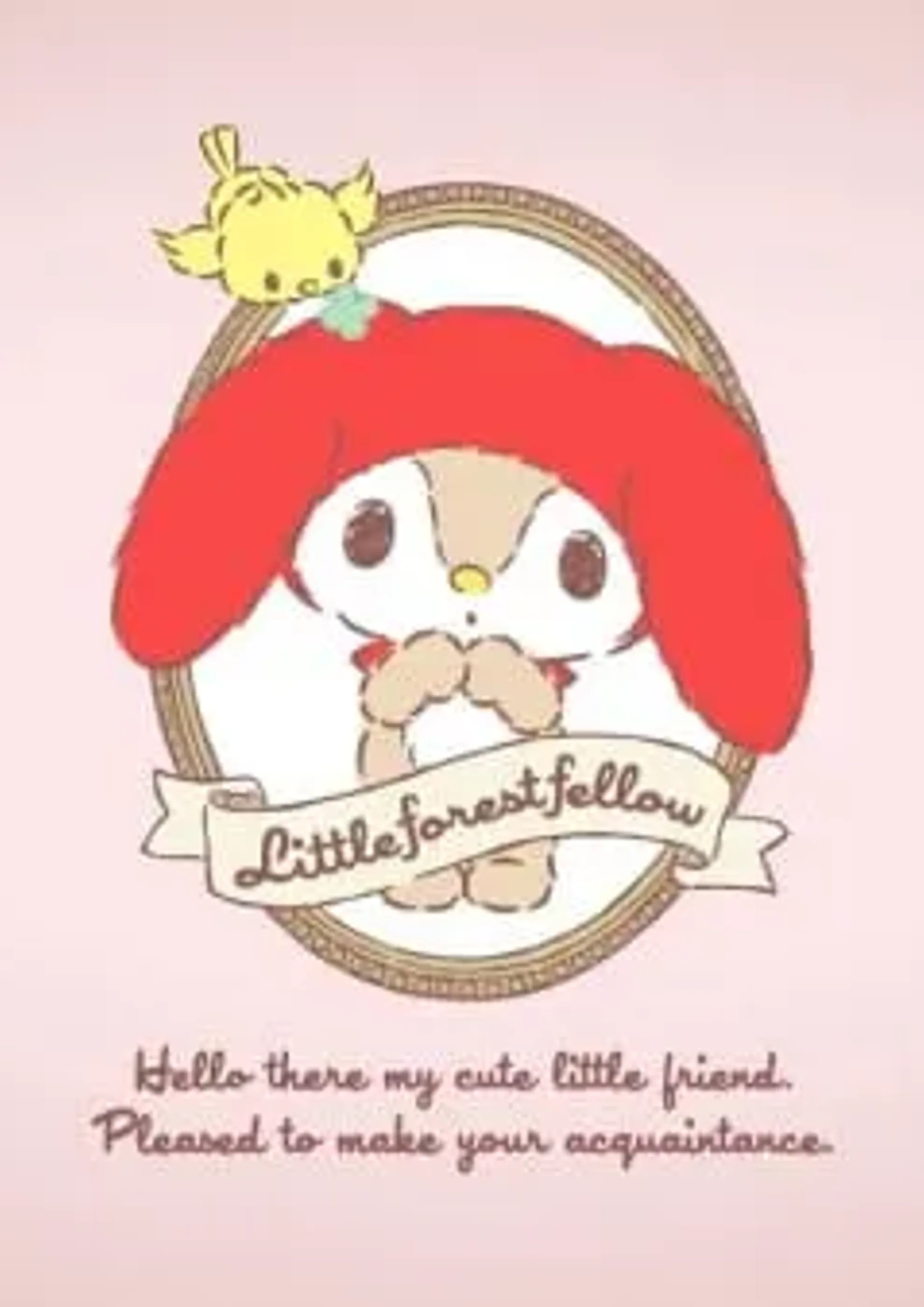 An introductory anime of Littleforestfellow, who is a rabbit boy and the second cousin of My Melody. He is nicknamed "Mello" (めろぉ). He really likes My Melody and likes to collect buttons with her. His birthday is on January 18th, just like My Melody. (Source: Wikia)